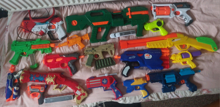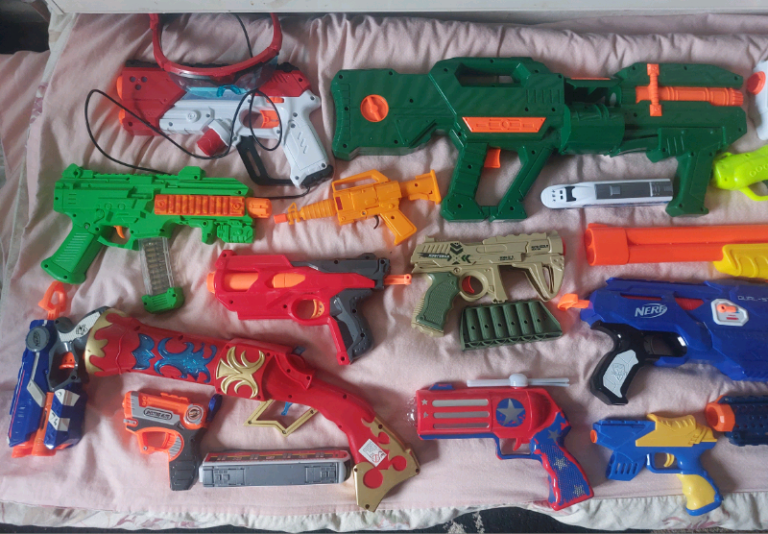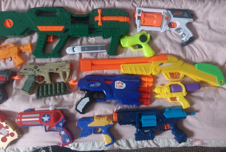 different and stylish guns toy bundle in all sizes good used condition its round about 15 items. collection from Gorton M18 Aera. from pet and smoke free home.