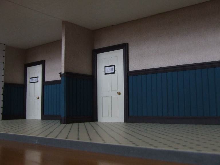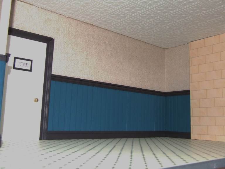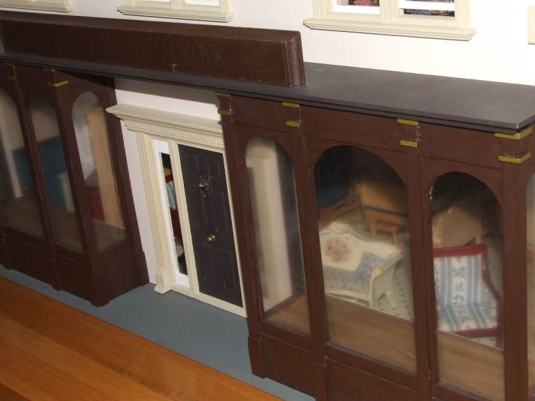 Decorated as a shop or cafe on ground floor, with house upstairs.