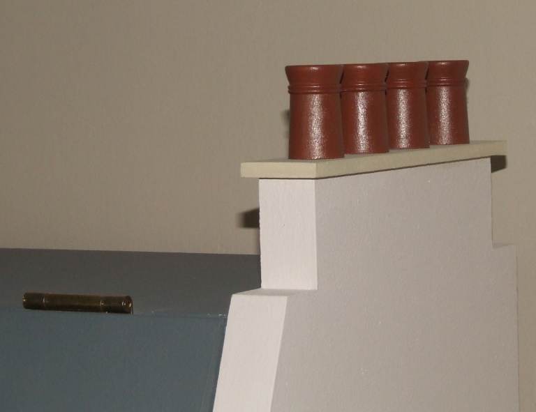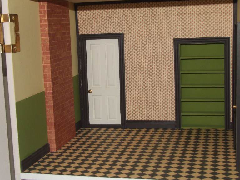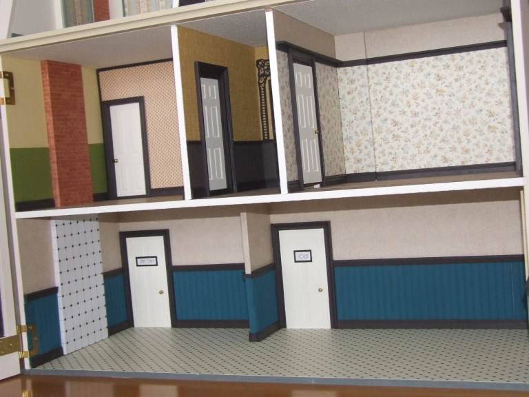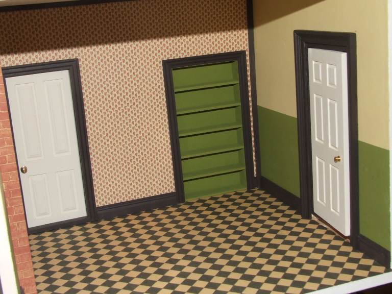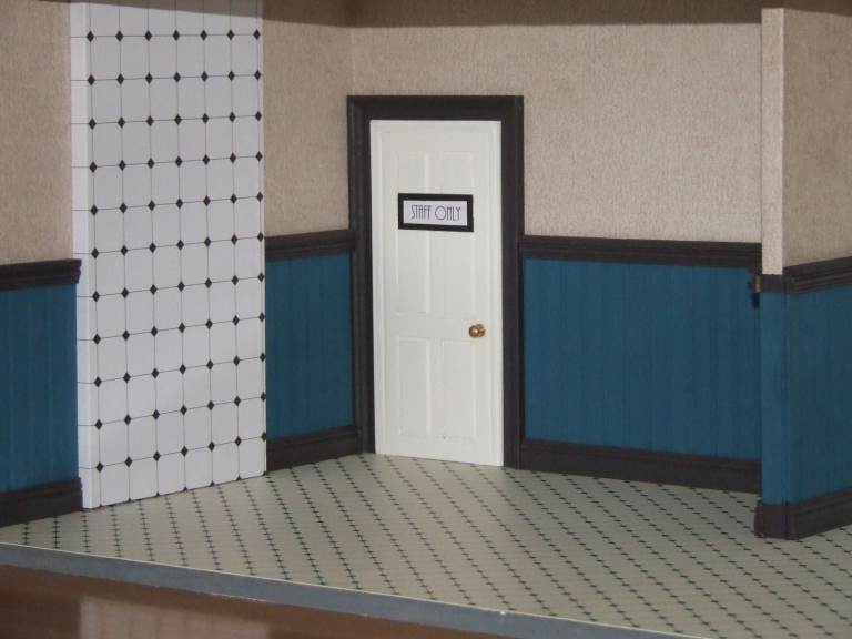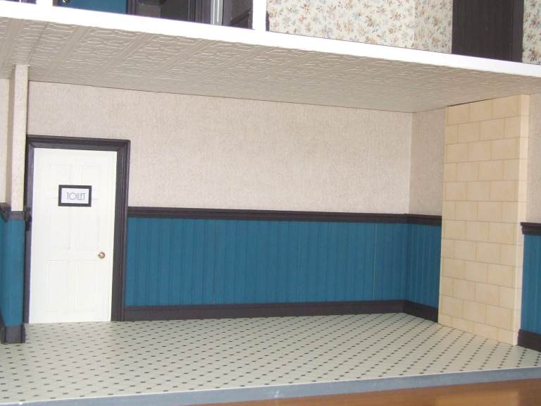 Decorated as a shop or cafe on ground floor, with house upstairs.
