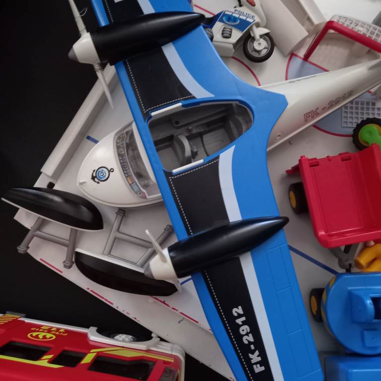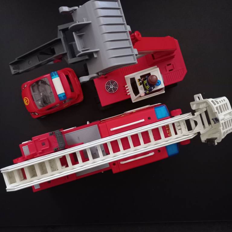 Huge fire track, emergency service set, aeroplane, ink rink, figures, industrial.