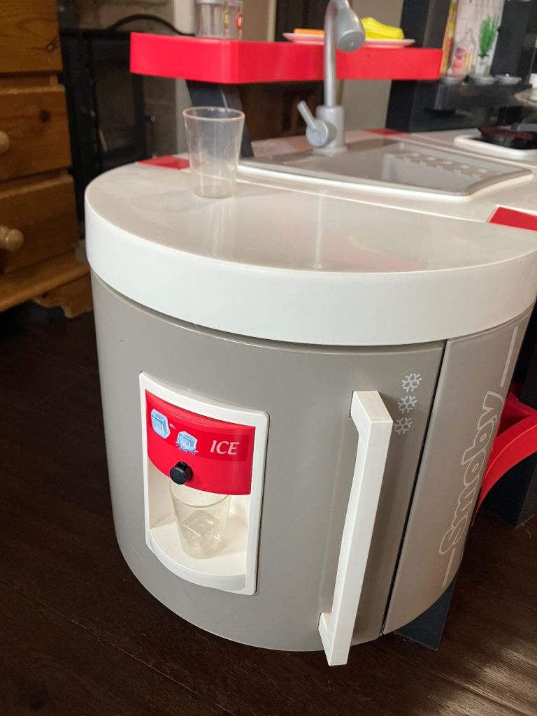 Large toy kitchen with ice maker, coffee machine and accessories
