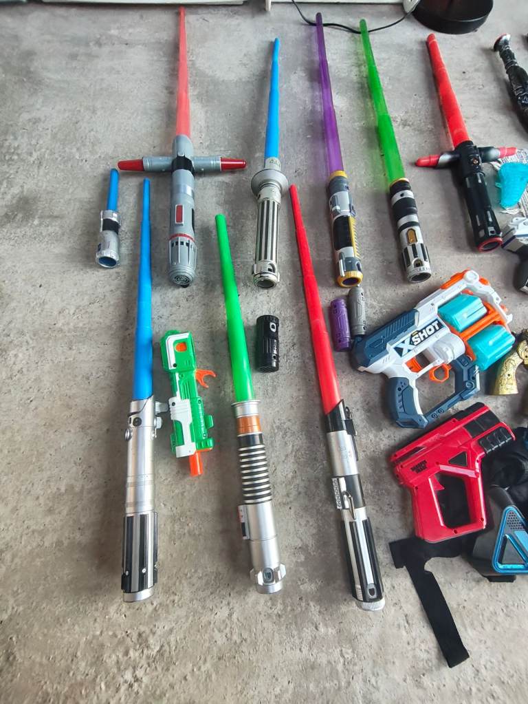 Posting for 10+ yearslight sabers/toy/sword/gun/bundle. Approx (40 items)