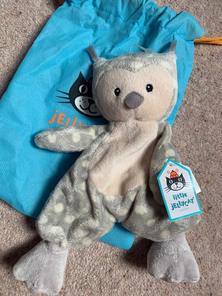 Ollie Owl Boubou. Brand new and unused in bag. Rare little Jellycat Toy. Collection only from Headingley or postage can be arranged with buyer at additional cost.