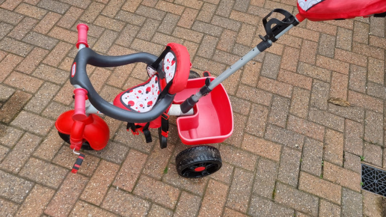 Little Tikes red trike with detachable parents handle, bag and rear tipper. Suitable from 9 months. In excellent condition. £12 or nearest offer. Cash on collection from Long Eaton.