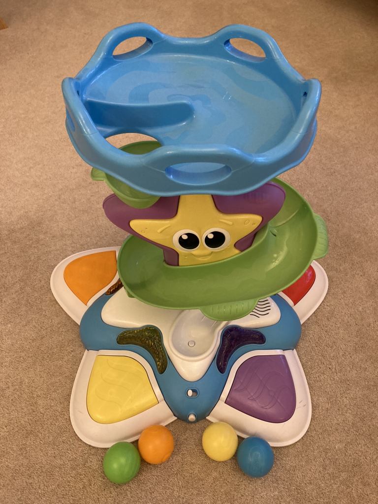 Little Tikes Stand 'n Dance Starfish tower encourages your baby to create music and to dance along to the music. The light-up keyboard can be played by little hands when sitting or by little feet when standing up and dancing. Your baby can use the Little Tikes Stand 'n Dance Starfish curvy tower to pull themselves up into a standing position. Your baby can then make the balls spiral out of control down the ball drop to chase. Hours of fun with Little Tikes Stand 'n Dance Starfish from sitting to standing, to dancing!