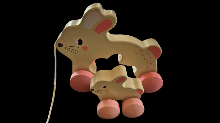 Little town pull along wooden rabbit with baby that pops out the middle smoke and pet free home
