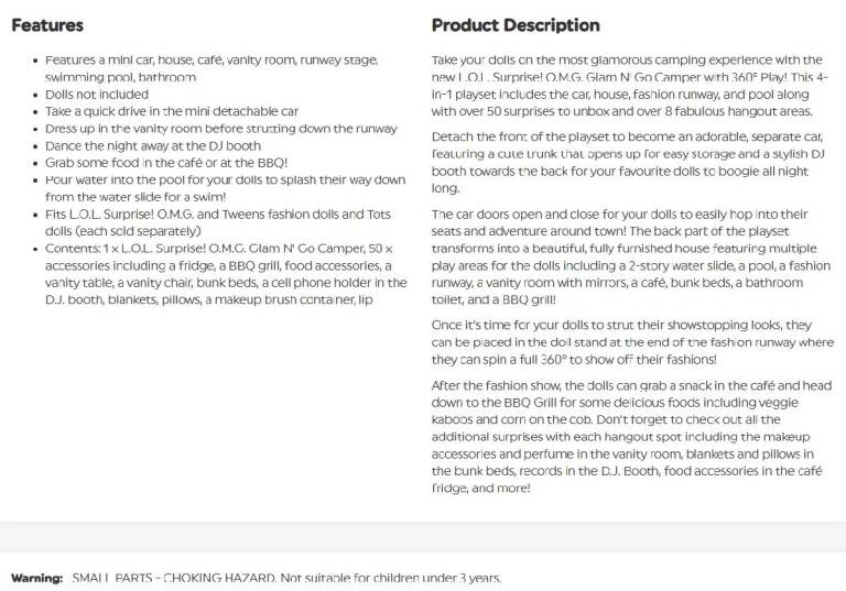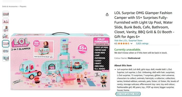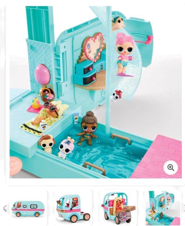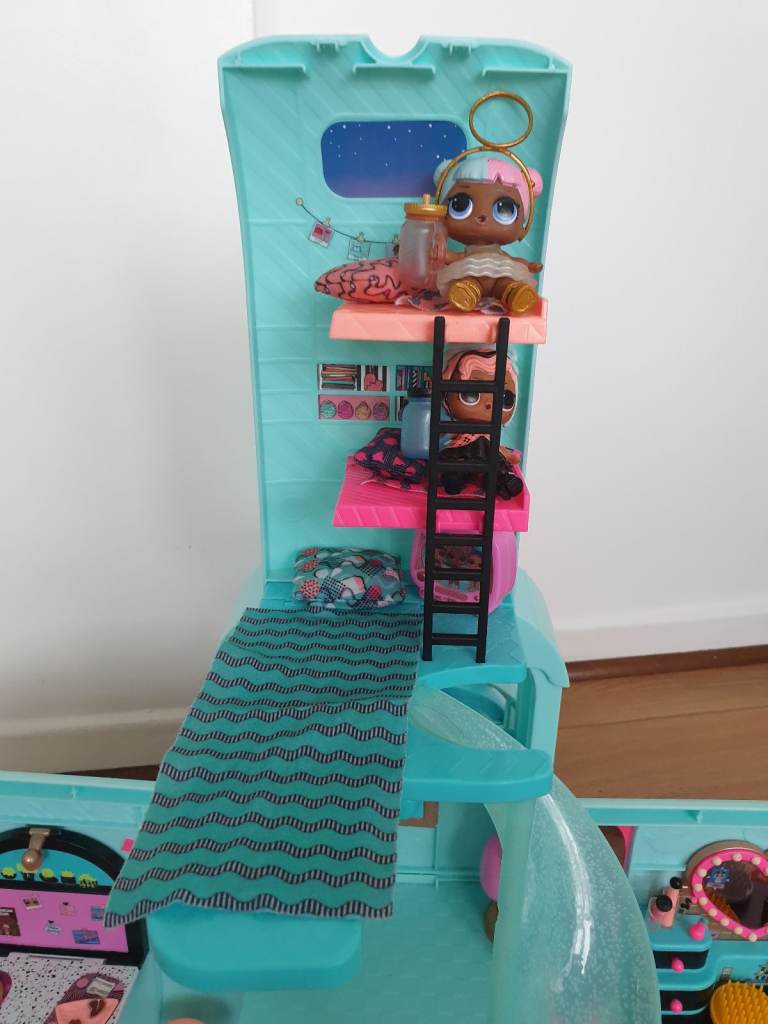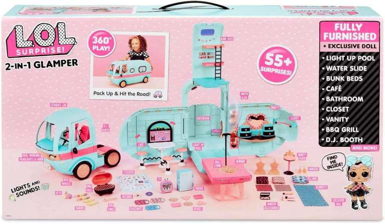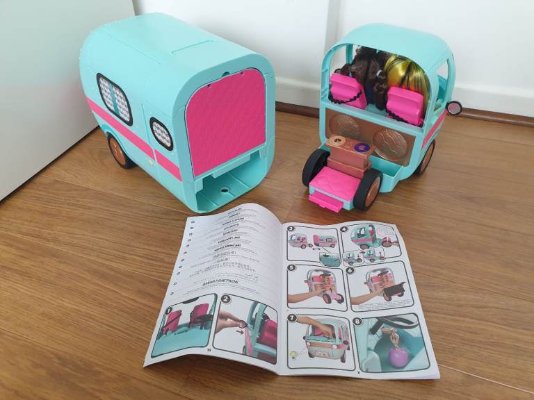 Glamper comes with accessories and extra fashion dolls. It originally included only one small doll so 2 large OMG LOL dolls, an additional small doll and one cat are also included in this bundle.