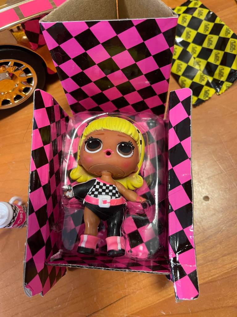Comes with the original racing girl Lol doll (S-035) and her complete accessory set (including water bottle holder for the detachable pool) for both doll and the car, including the original box. Retired item.