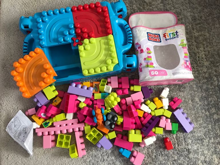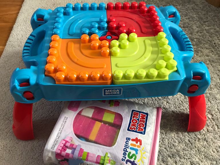 Learn with this Build 'n Learn table by Mega Bloks. This portable playset helps your child build worlds with their imagination. The convenient table provides a snappy platform for independent play and interactive discovery, with First Builders blocks and colourful stickers. Create a scene and load the figure into the car to zoom around.