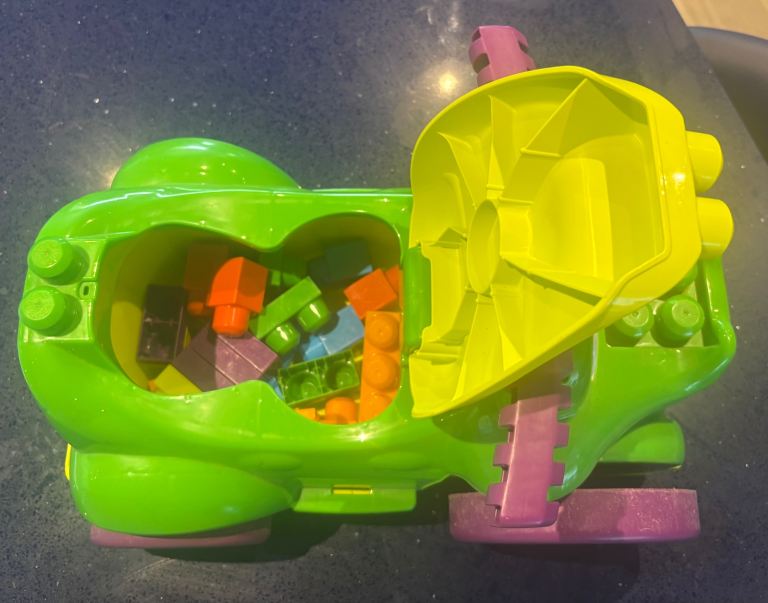 MEGA BLOKS Ride 'n Chomp Croc Ride-on Toy Building Block with a handlebar for easy steering.