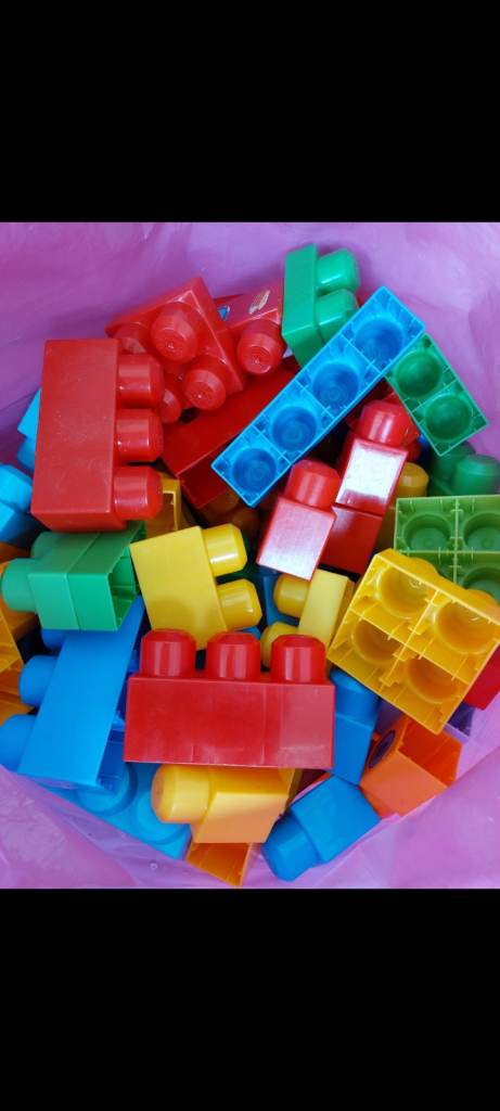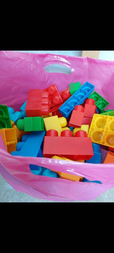 A large carrier bag of Mega Bloks. Various sizes, bag contains 209 items. Collection Portslade.