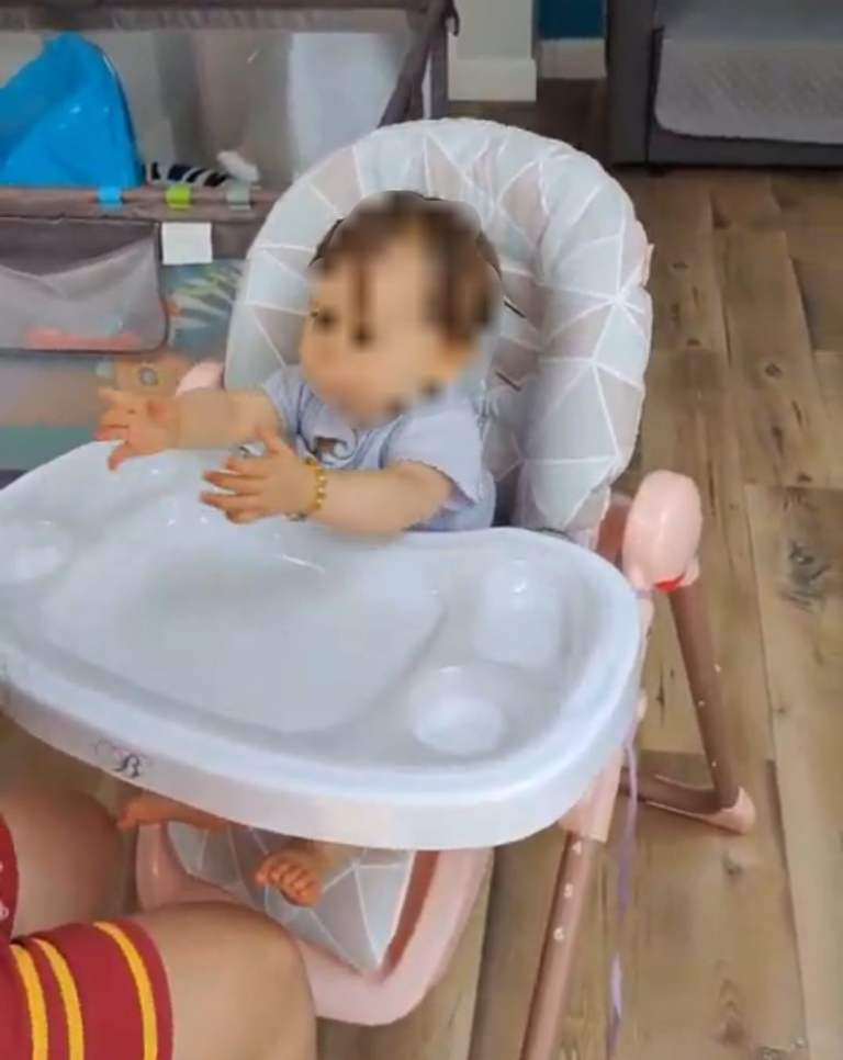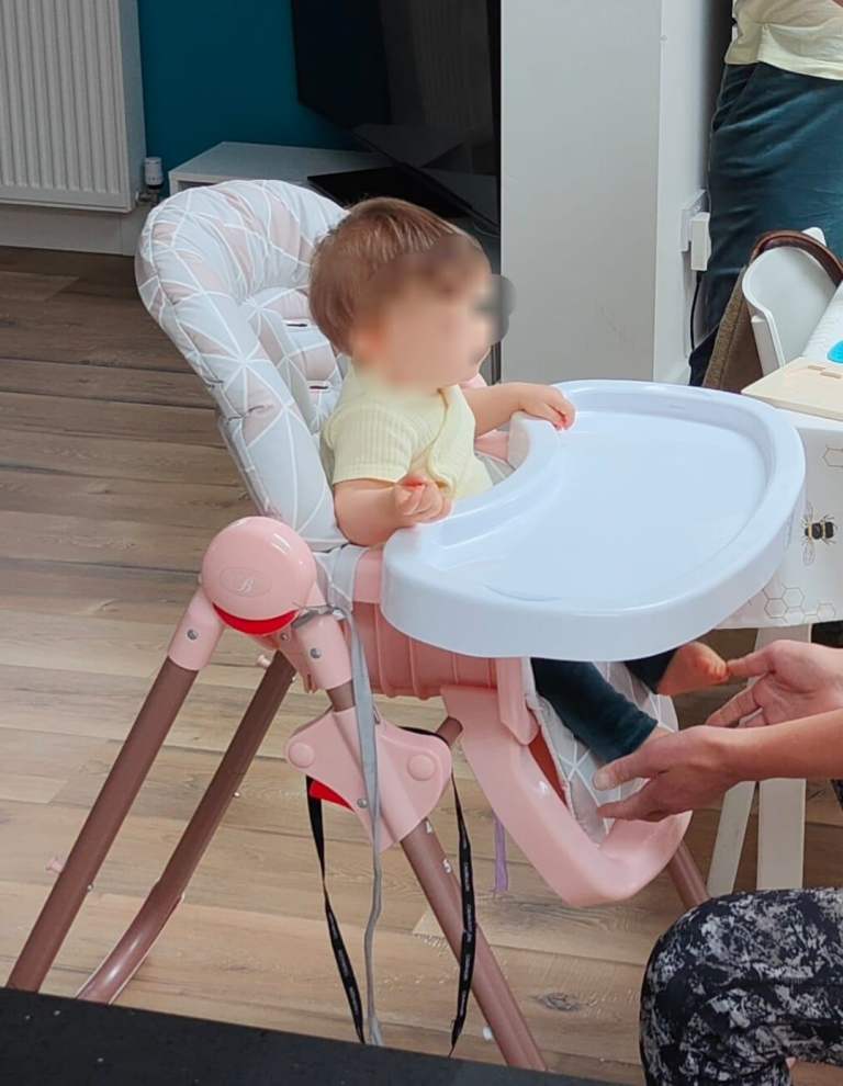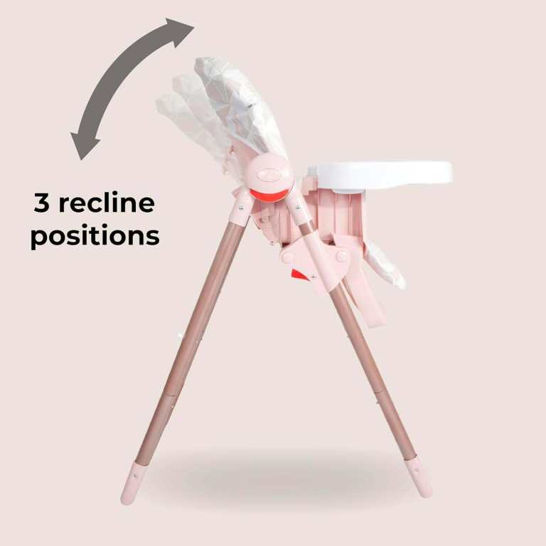 MyBabiie Highchair – Adjustable, Removable Tray, Foldable, from 6 Months to 3 Years – Rose Gold