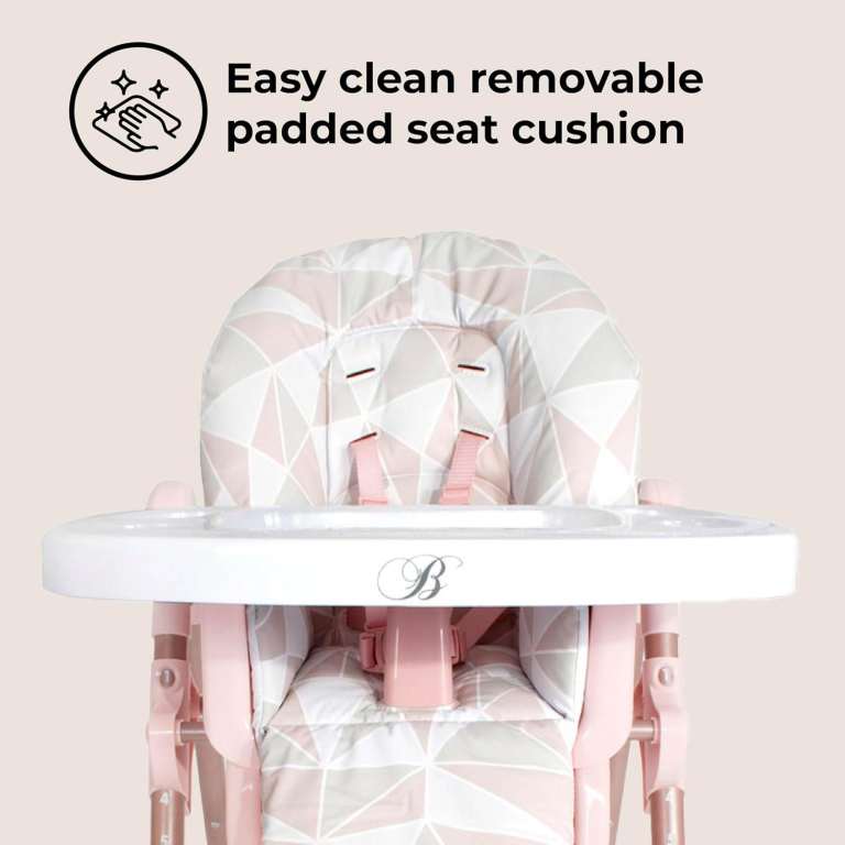 CUSTOMISABLE COMFORT: Featuring 3 recline positions, 6 height settings, and a padded seat cover, this high chair ensures a cozy, tailored fit for your child during mealtimes