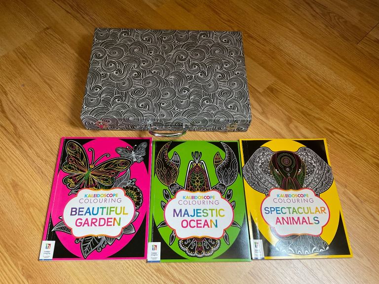 Full set of neon kaleidoscope colouring pens, pencils and books, in excellent condition. The books have each had only 1-2 pages started or completed but the rest of the books are completely ready to be done hence price. Collection is Oakridge, rg21 5sb.
