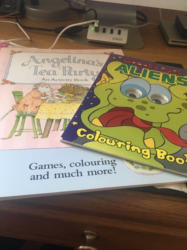 New Angelina’s tea party( £4.99 new) & activity book & wobbly eyes aliens colouring book