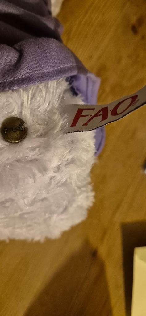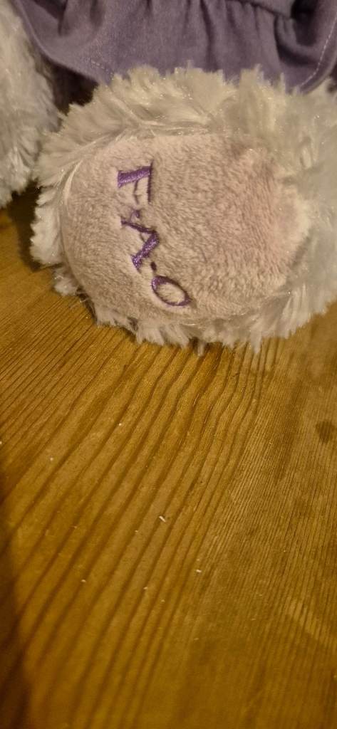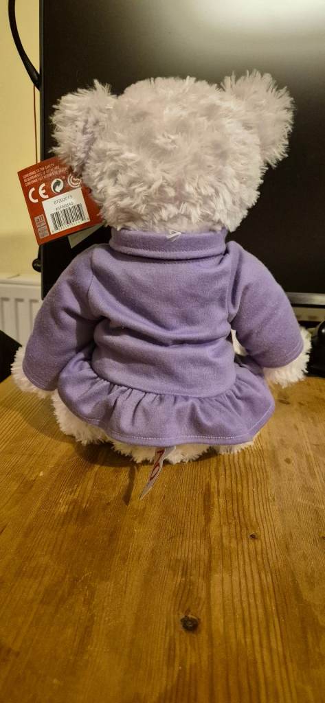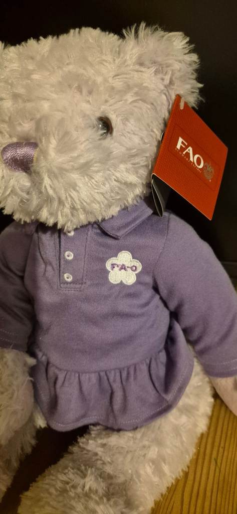 New Toys R Us F.A.O Swartz Light Purple Teddy Bear Purple Dress Plush Soft Toy. Approximately size: 12"