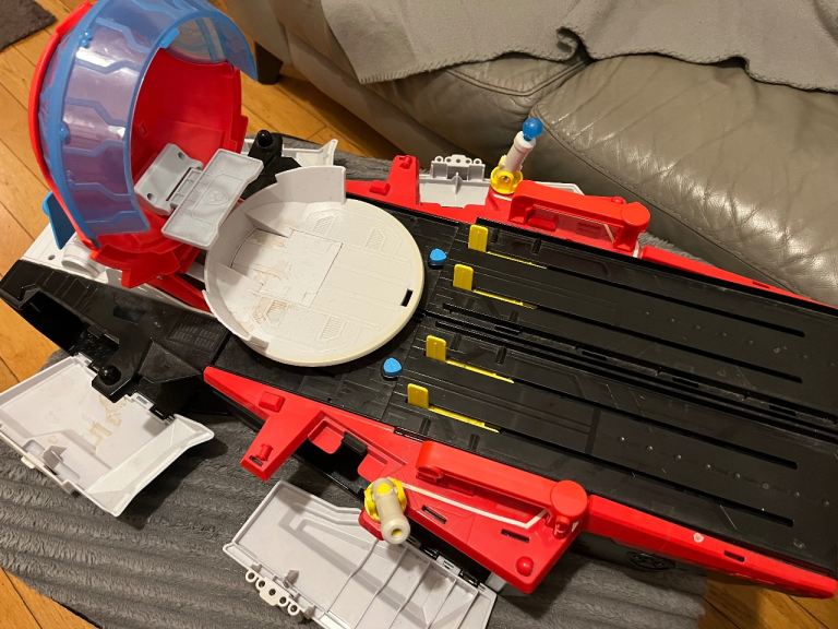 From mighty movie the paw patrol air craft carrier. Perfect condition rarely used.