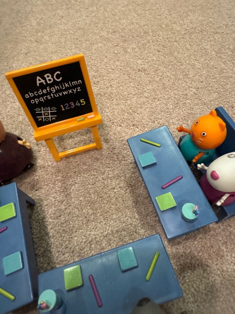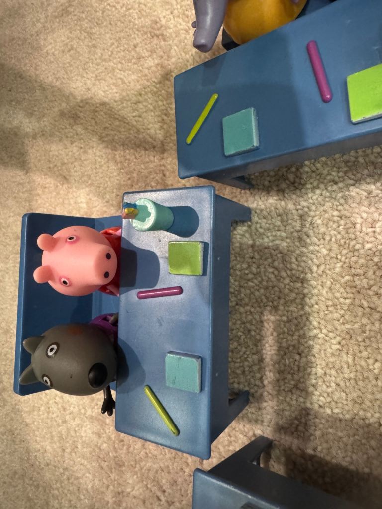 Includes x3 desks x1 peppa and x5 friends, x1. Miss Gazelle and the classroom board. General great condition smoke and pet free home.