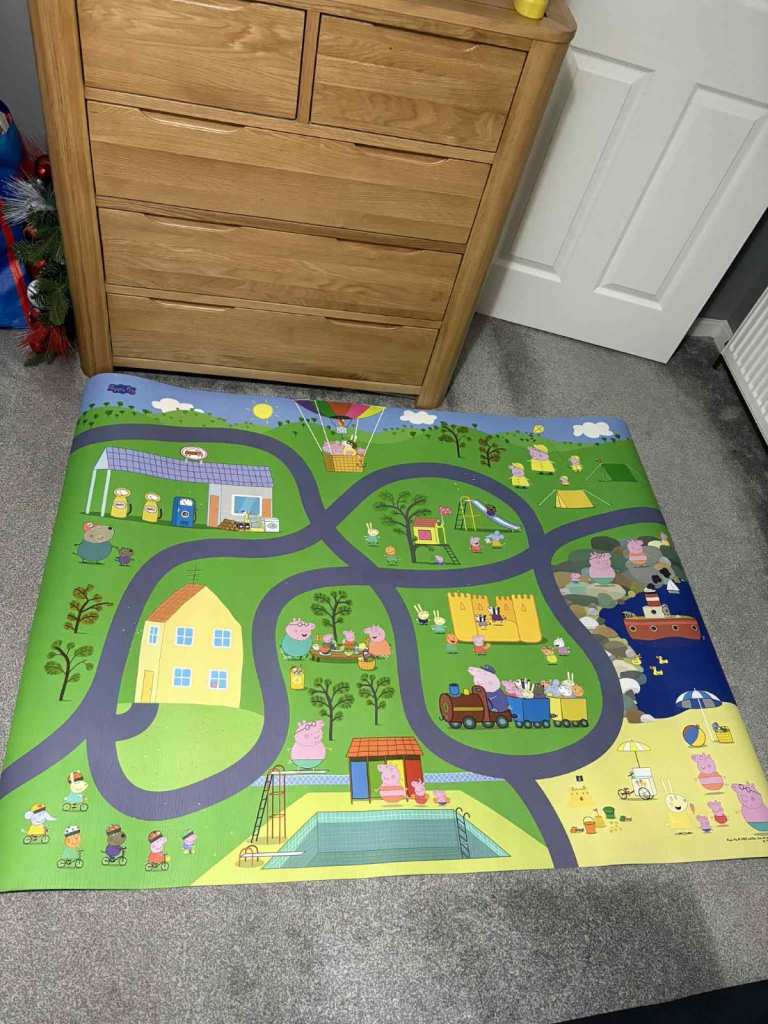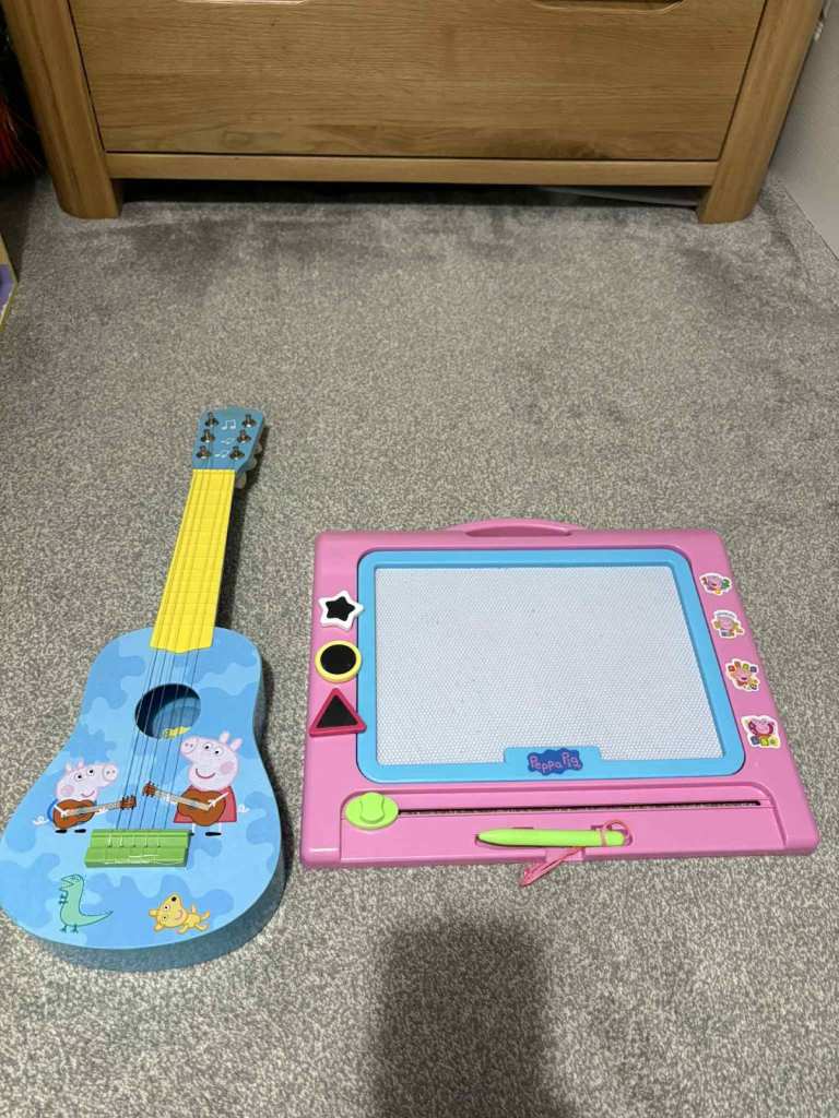 Peppa Pig house/guitar/etch-a-sketch/mat(a couple of scratches), all in good condition (a couple of imperfections on the house as shown) from a smoke-free home