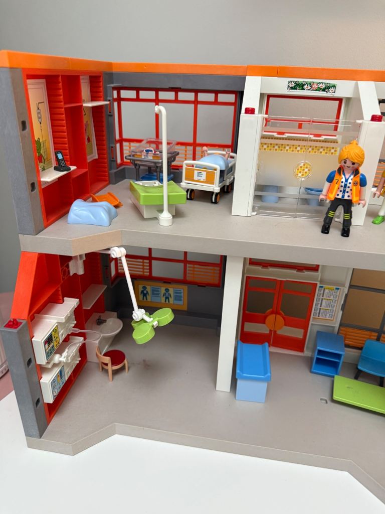 Playmobil hospital with some furniture and 6 figures included.