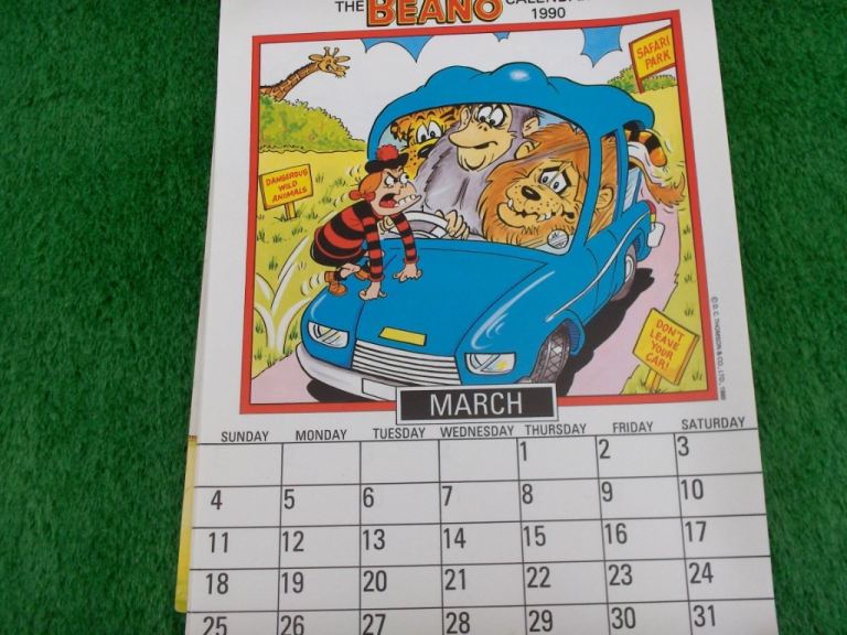 Pocket Money Present for A Beano Lover. Vintage The Beano Calendar 1990