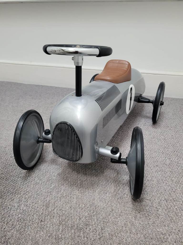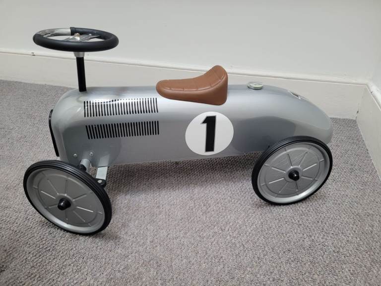 Posting for 9+ yearsSilver Ride On Metal Car