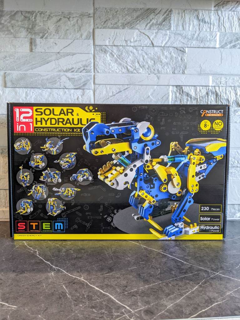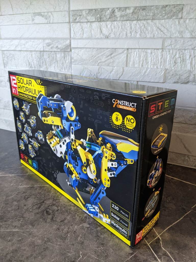 Learn about energy while you’re having some serious fun with this 12-in-1 solar hydraulic construction kit. This kit transforms into 12 different robots ranging from a T-Rex to a scorpion, or from a forklift to a digger!