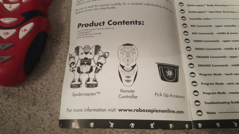 Spidersapien Remote Control Robot with separate controller & instructions, containing multiple various robot commands. Very unusual toy....great condition !!