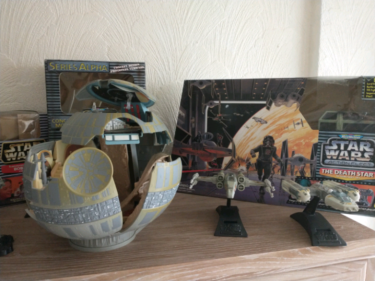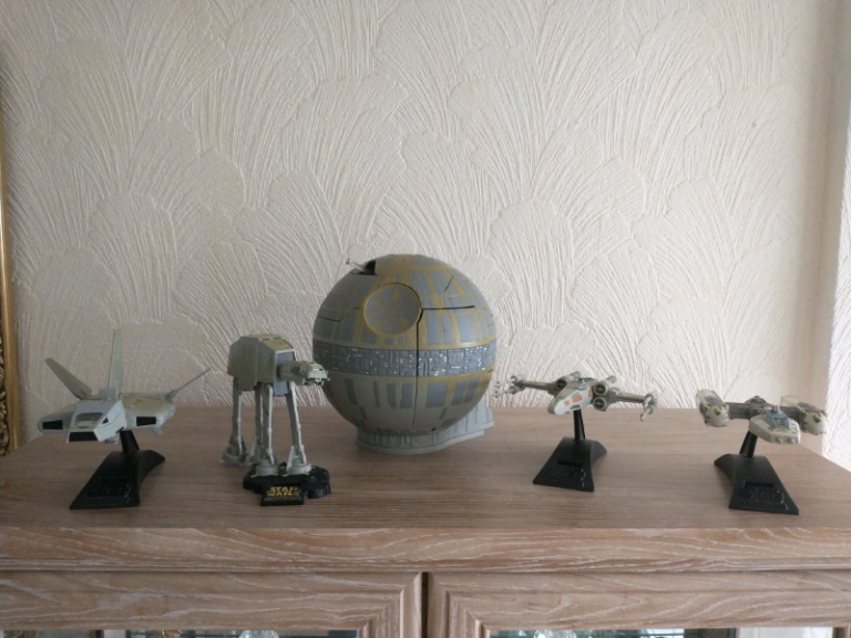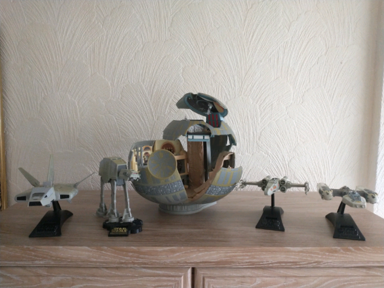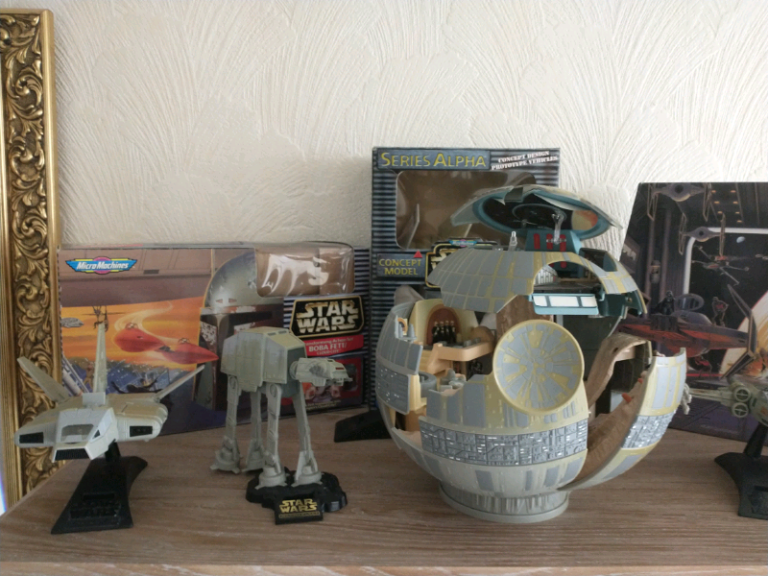 A bundle of Star Wars Micro Machines action fleet toys by Galoob includes the Death Star Boba Fett /cloud city ,Imperial shuttle , X wing , Y wing , imperial landing craft , imperial At - At, plus some figurines in a used condition Collection only