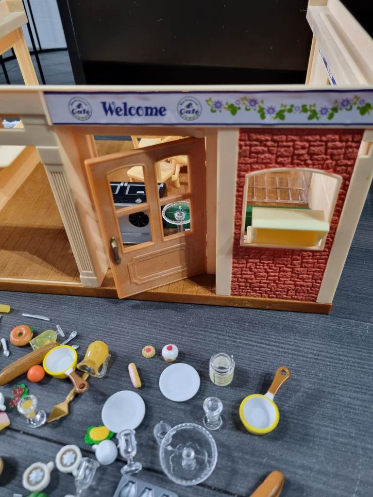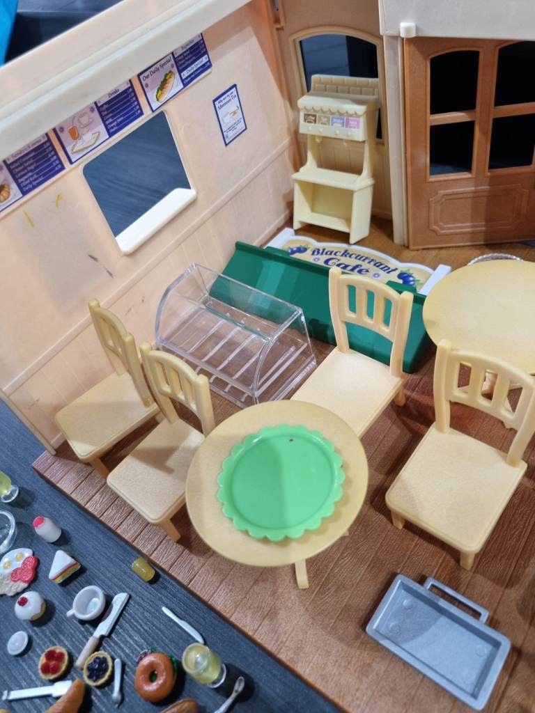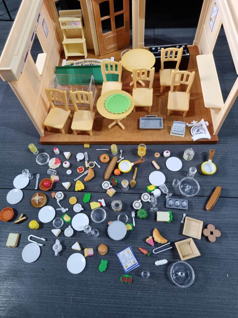 Sylvanian families blackcurrant cafe with lots of accessories as seen in the picture.