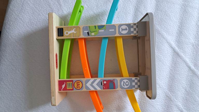 Top Bright Wooden Race Track Car Ramp Racer and 3 cars. Used, good condition. Collect from NW2