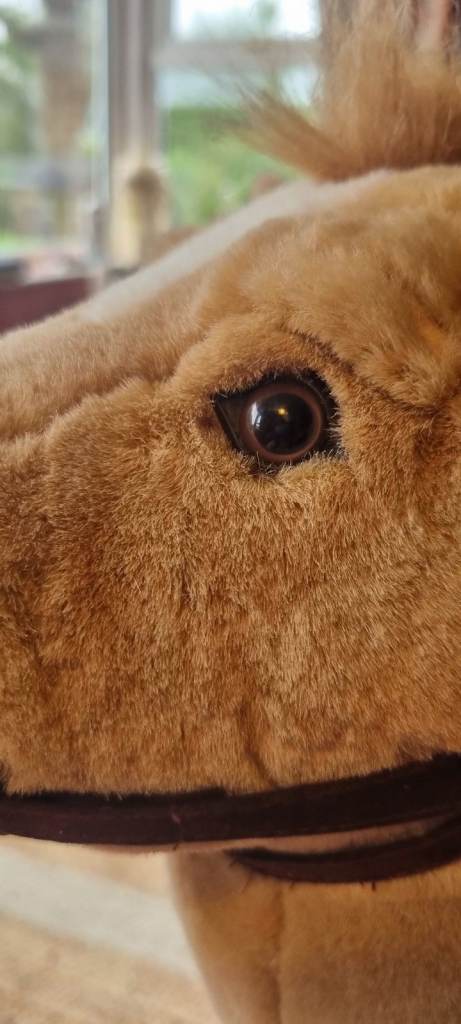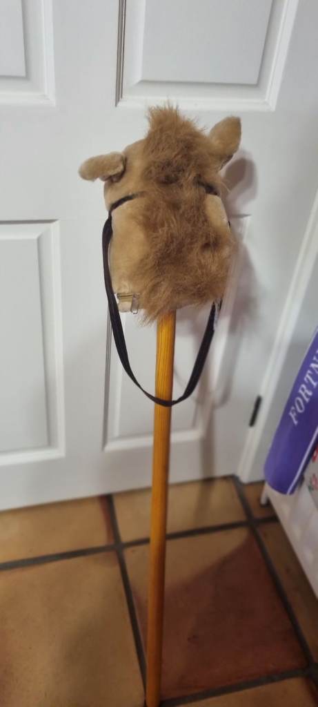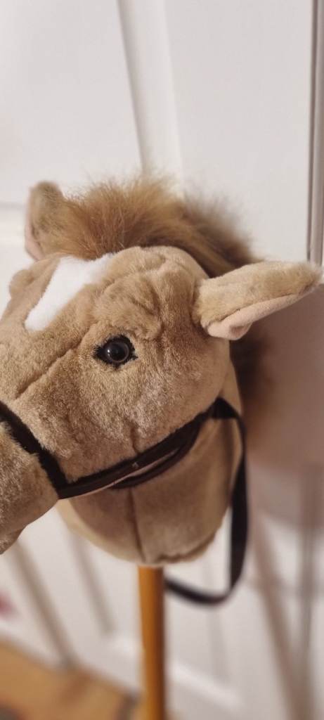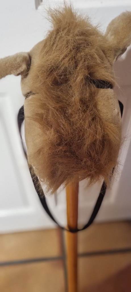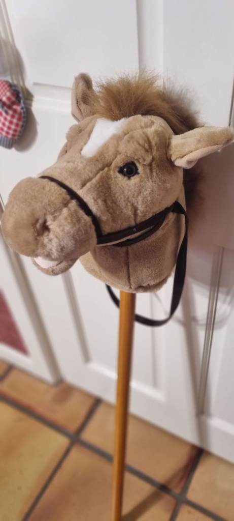 Pole is 28 inches high and 37 inches from end of pole to top of horse head. In excellent condition as rarely played with. Press one ear for galloping sounds and other ear for neighing sounds. Collection only.