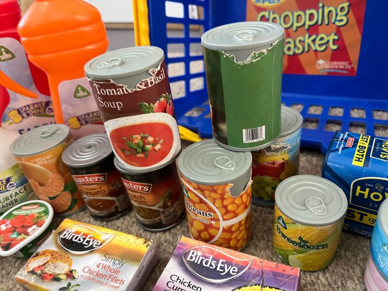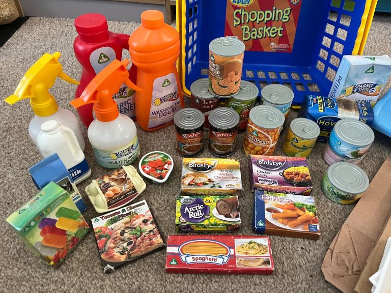 Some of the play cans of food have damaged labels but this does not affect use and plenty of life left in it.