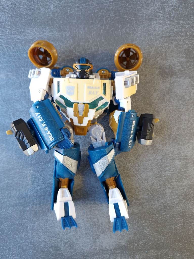 - Has both harpoon guns but no harpoons. Has some yellowing to the top.