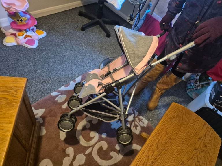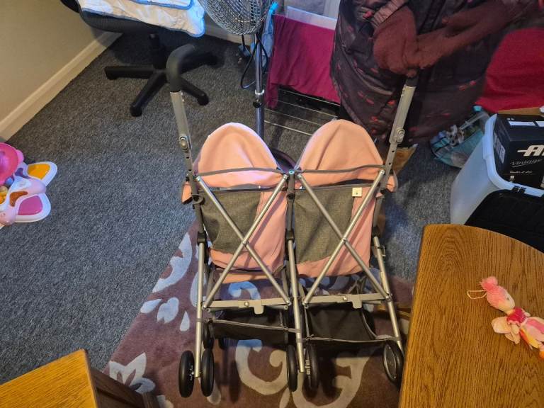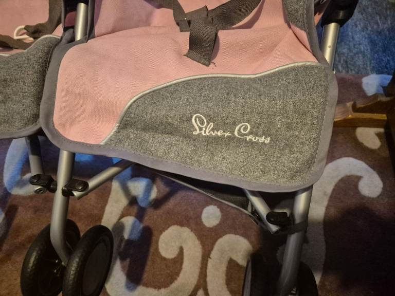 Twin pink and grey Silver cross doll's buggy. Good condition. Folds flat. Suit up to 5 years old. Handles extend.See other ads. I am in Thornhill.Price reduced.-£7.50