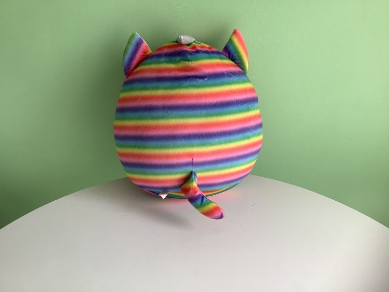 Very pretty super soft plush TY rainbow unicorn in excellent condition never been played with size length 15inches width 15 inches approximately would make an inexpensive gift .