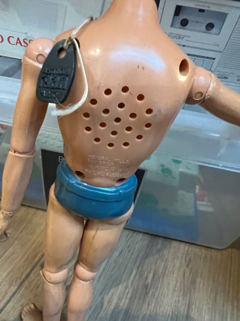 This Vintage 1980s Talking Action Man Space Ranger is a collectible action figure from the Action Man franchise. Manufactured in 1985, this talking action figure features a character inspired by a space ranger, making it a unique piece for collectors of vintage toys. With its retro design and interactive features, this action figure is sure to bring back nostalgic memories for fans of 1980s toys and games.