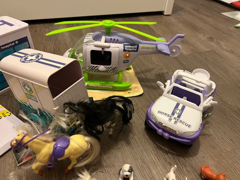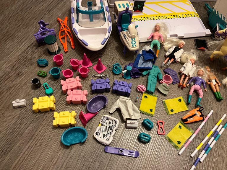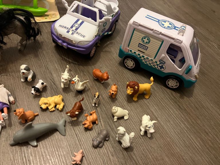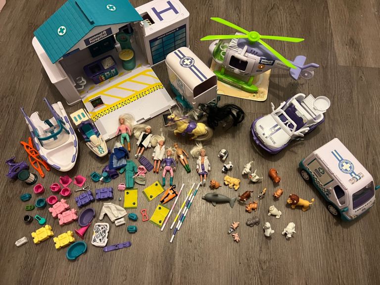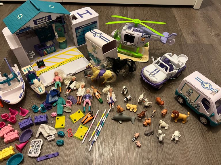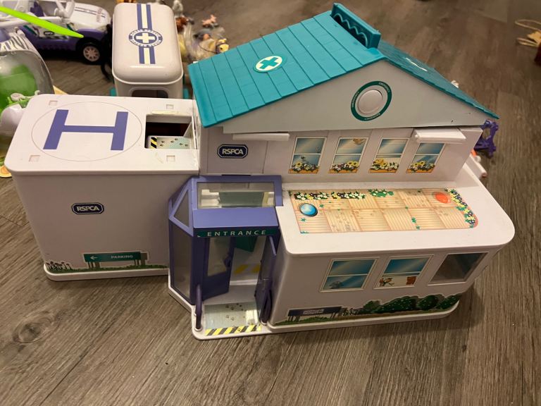 Vintage RSPCA Animal Hospital Bundle. Includes Animal Hospital Care & Rescue centre, helicopter, ambulance, rescue boat, bike, horse box, figures, pets and accessories.