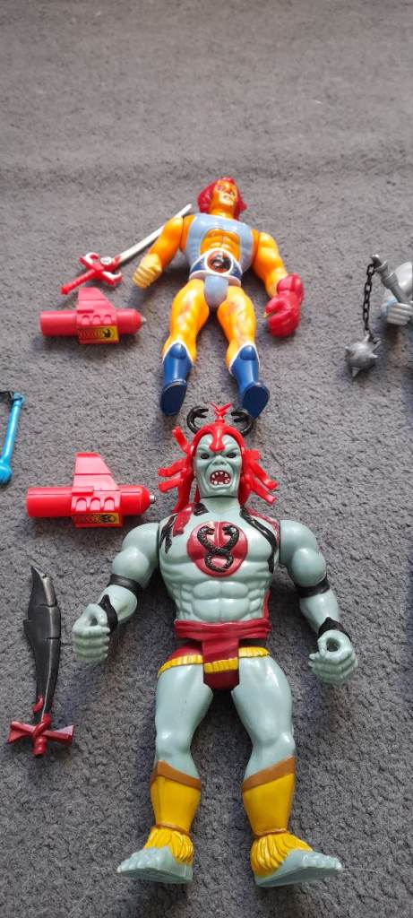 All played with, mostly in really good condition aside from Lion-o whos been in a few battles.....although the rare bits are all complete and I tact (power unit, claw, sword).