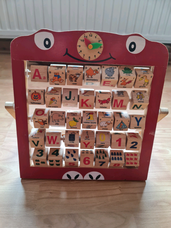 • 26 x wooden cubes with a complete set of letters of the alphabet and words