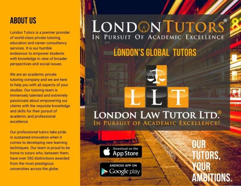London Tutors®, Law Tutors Online, and London Law Tutor® are trading names of London Law Tutor Ltd. which is a company registered in England and Wales. Company Registration Number: 08253481. VAT Registration Number: 160291824 Registered office: Berkeley Square House, Berkeley Square, London, UK W1J 6BD - All Rights Reserved. - Copyright © 2012-2023.