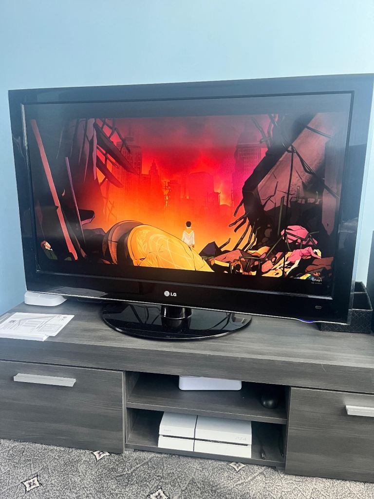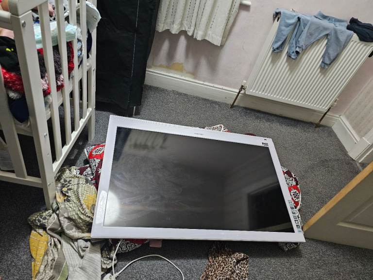 Slight blue tinge to the screen as seen in pics along with a small crack in corner of outer frame.