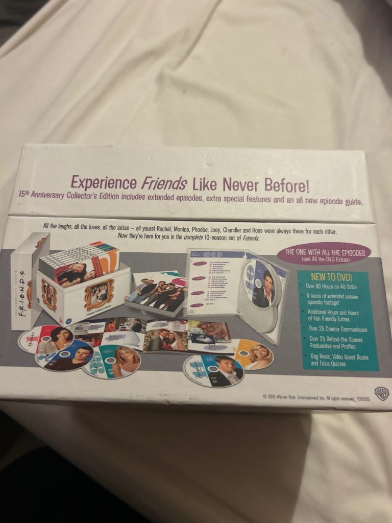 Friends complete collection with extended episodes and unseen footage. It’s open but don’t think it’s actually been used before.