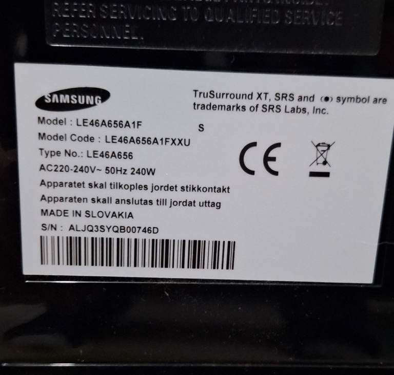 Samsung 46in freeview TV model no: Model:LE46A656A1F. Wide Screen TV