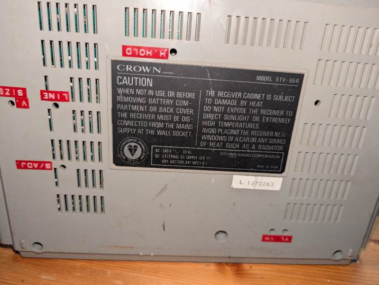 VINTAGE TV RADIO. Crown portable tv radio. Model 5TV-65R surprisingly good sound from radio. CRT screen works but obviously just shows snow as nothing is broadcast anymore for cooncil telly