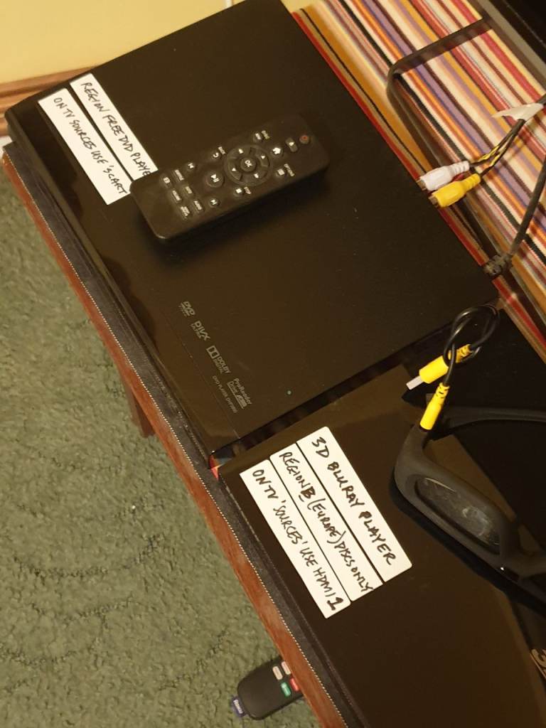 40 inch 3D TV, all-region DVD player and 3D Bluray player. Also Roku Freeview.