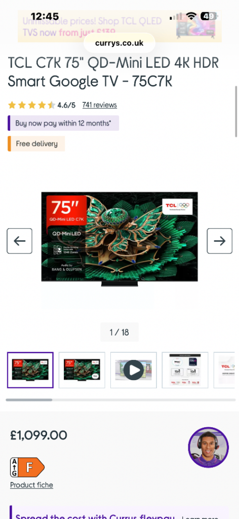 1x SAMSUNG - UE50AU9007KXXU 50" Smart 4K Ultra HD HDR LED TV with Bixby, Alexa & Google Assistant