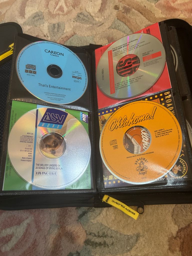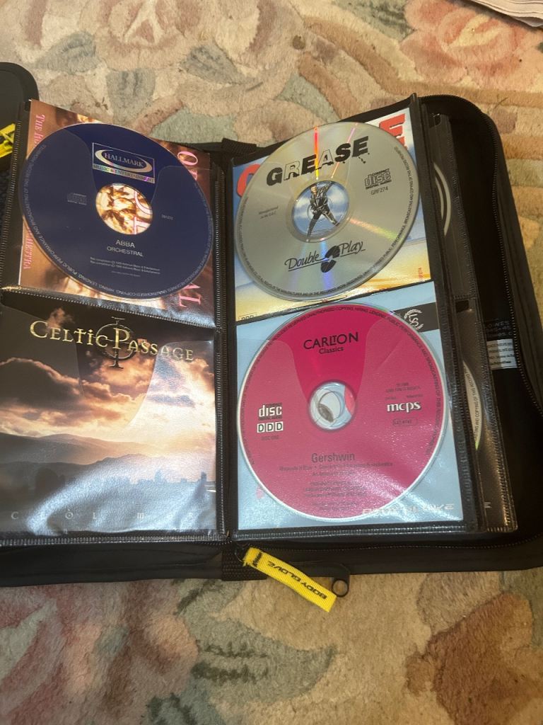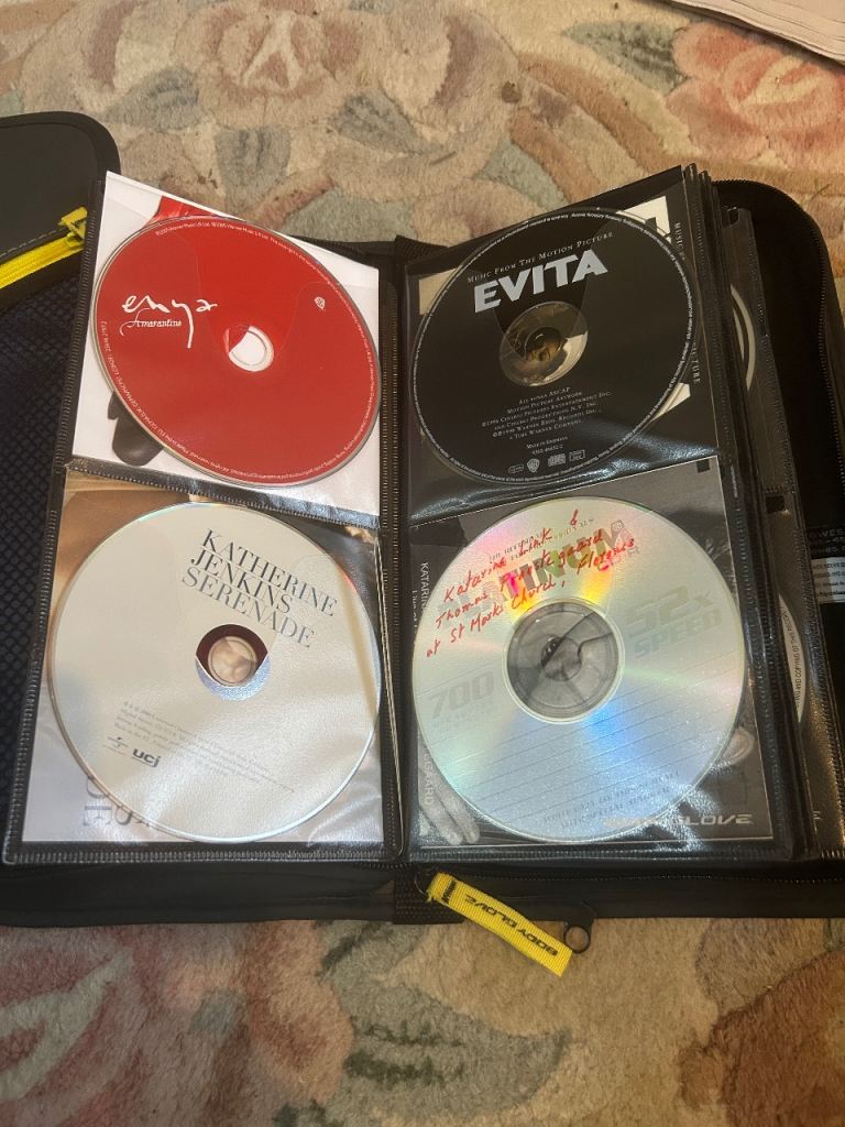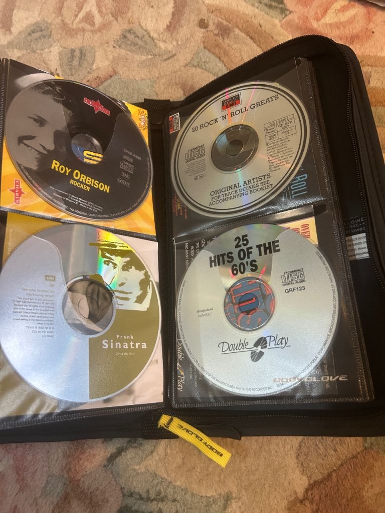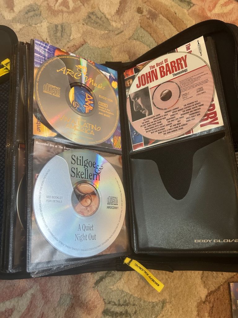 Slimline Body glove DVD/cd waller which has 14 pages that hold 4 discs each which is 56 discs in total. This wallet comes with 42 music cds of a varied selection all of which are in good condition for many hours of pleasant listening case itself is in excellent condition collection bh14 0pn
