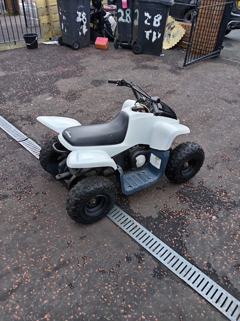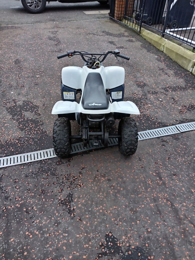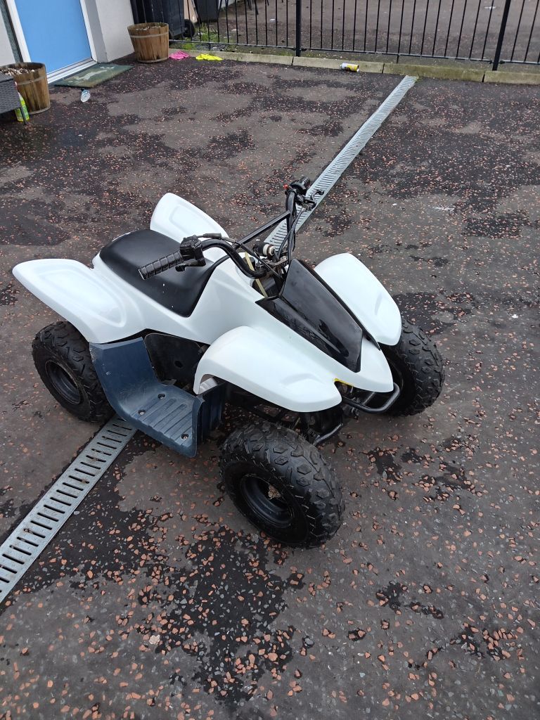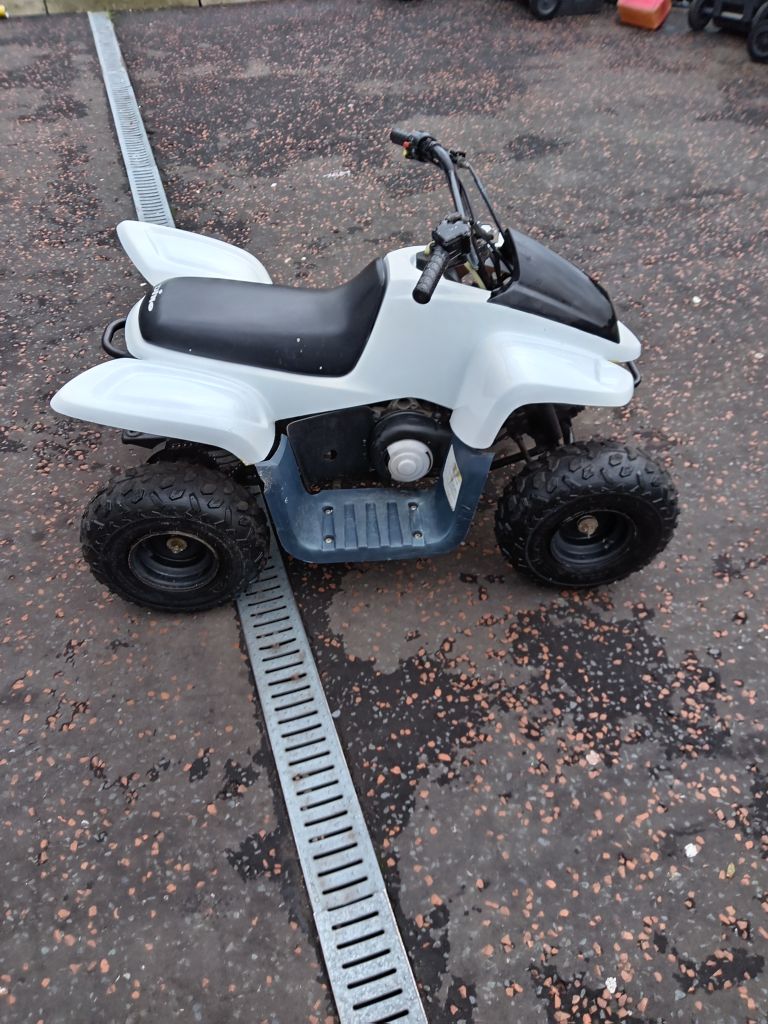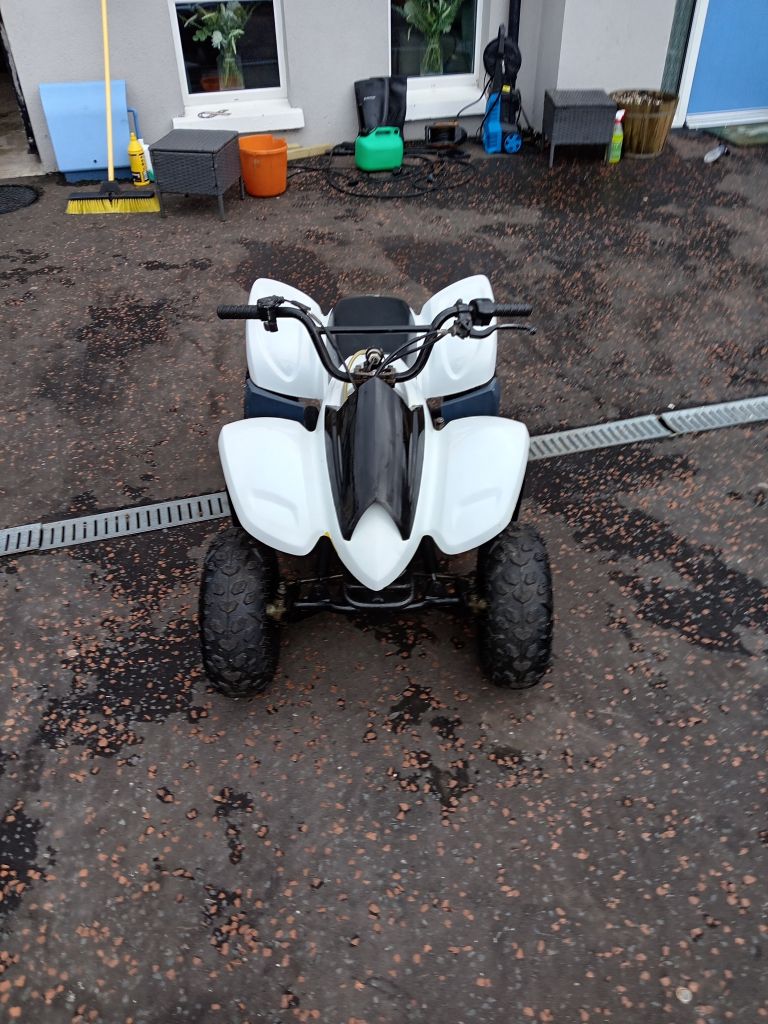 Was bought for the we lad for Christmas 2 years ago been on it twice hasn't got used good tight driving we thing has the reliable suzuki 50cc engine in it has electric starter will need battery tho start on the kick every time has 4 new tyres plastic shell is 100% no cracks ready to go