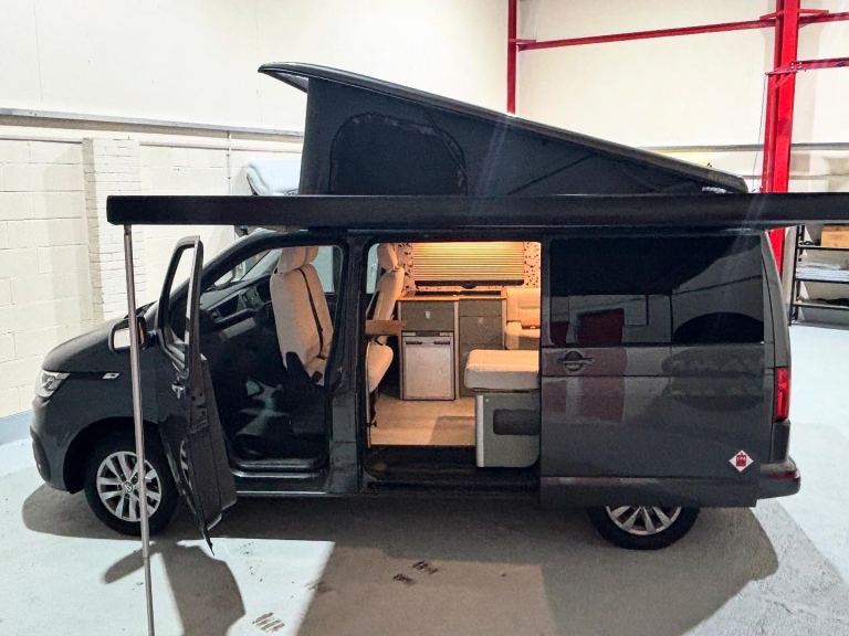 Storm - Pop top roof (Indium grey finish), charcoal grey scenic canvas & bi-folding elevating bed